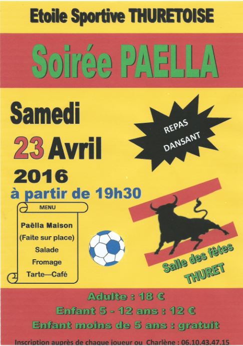 15 avril 2016 - Dans La Vie des Associations Par Pierre LYAN 0 Soirée paella du foot : samedi 23 avril 19h30 Précédent Pierres de construction mises en réserve pour les aménagements futurs Suivant Peut-on faire brûler ses déchets verts dans son jardin ?